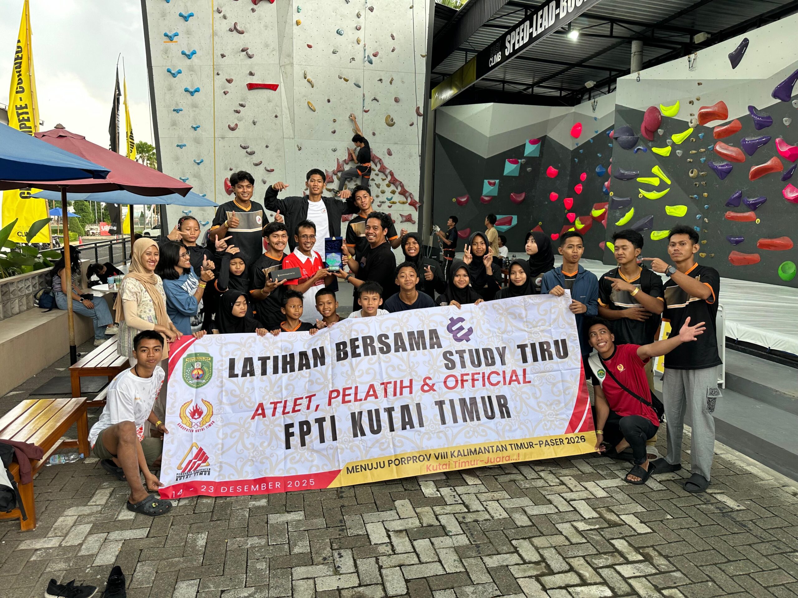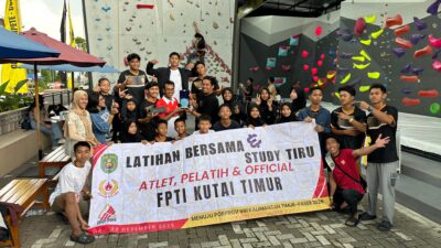 Sangatta – Federasi Panjat Tebing Indonesia (FPTI) Kabupaten Kutai Timur terus mematangkan persiapan menghadapi Pekan Olahraga Provinsi (Porprov) VIII Kalimantan Timur Tahun 2026. Salah satu langkah strategis yang dilakukan adalah menggelar rangkaian latihan bersama (sparing) dan studi tiru ke sejumlah daerah di Pulau Jawa.