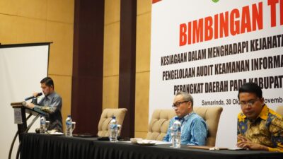 SAMARINDA – Menyadari meningkatnya ancaman siber di era digitalisasi, Dinas Komunikasi, Informatika, Statistik, dan Persandian (Diskominfo Staper) Kabupaten Kutai Timur (Kutim) menggelar Bimbingan Teknis (Bimtek) keamanan siber bagi Perangkat Daerah (OPD). Acara bertema “Kesiagaan dalam Menghadapi Kejahatan Insiden Siber dan Pengelolaan Audit Keamanan Informasi bagi Perangkat Daerah” ini berlangsung di Aston Hotel & Convention Samarinda pada Kamis (31/10/2024) dan dihadiri oleh perwakilan dari berbagai OPD se-Kutim.