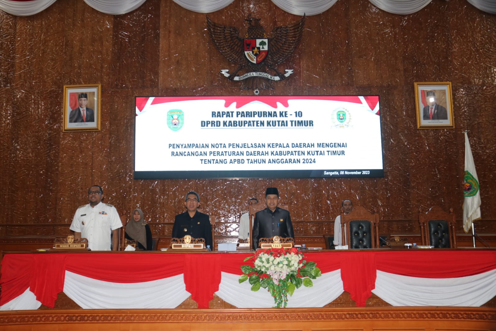 (Kutim) – Dewan Perwakilan Rakyat Daerah (DPRD) Kabupaten Kutai Timur (Kutim) melaksanakan Rapat Paripurna Penyampaian Nota Penjelasan Raperda APBD 2024. Paripurna ke-X itu, dilaksanakan di Ruang Rapat Utama Kantor DPRD Kutim, pada Rabu (08/11/2023).